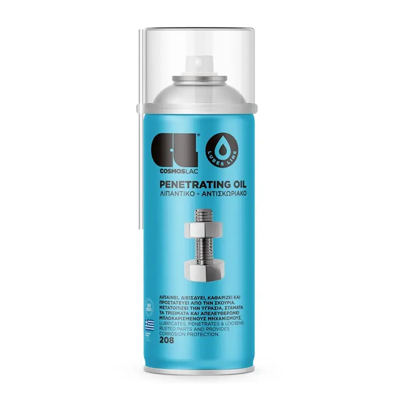 Το Cosmoslac 208 400 ml είναι λιπαντικό, αντισκωριακό σπρέι υψηλής διεισδυτικότητας. Έχει την ικανότητα να εισχωρεί και να αποµακρύνει την υγρασία και την σκουριά από οποιαδήποτε επιφάνεια. Επιπλέον λιπαίνει κάθε µεταλλικό αντικείµενο εξασφαλίζοντας την άριστη λειτουργία του. Μπορείτε επίσης να το χρησιμοποιήσετε για την εκκίνηση βρεγµένων κινητήρων.